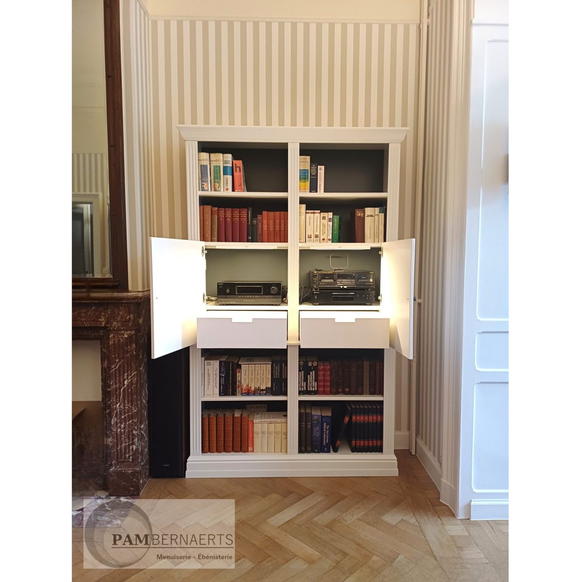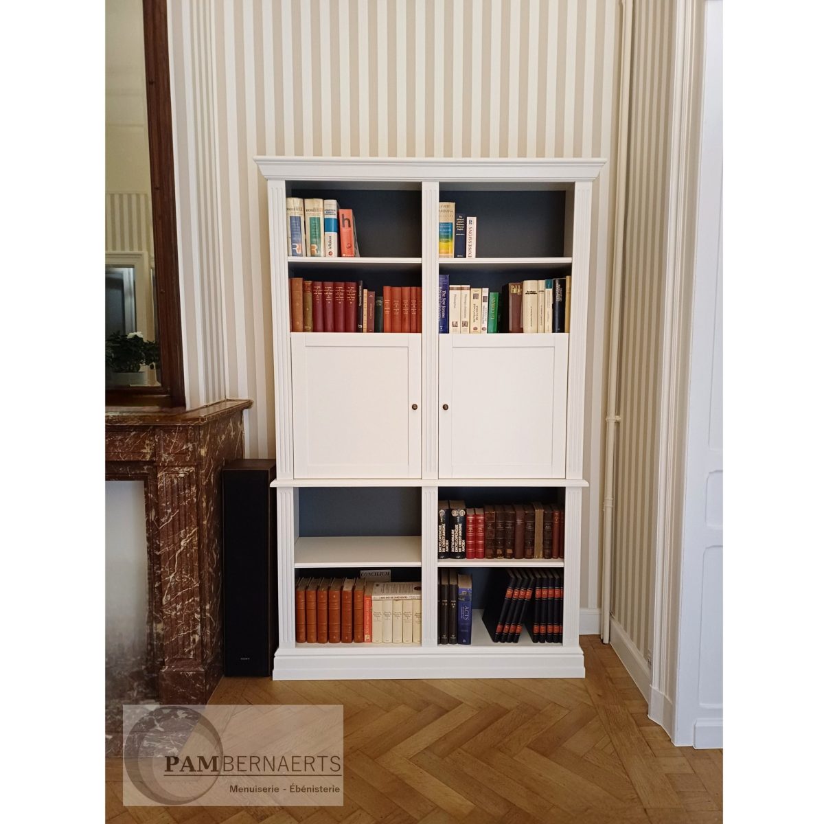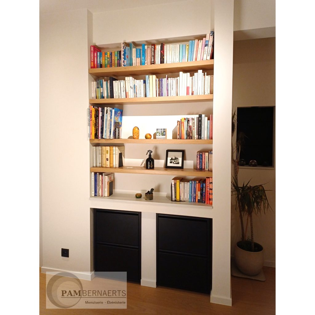 Bibliothèque en chêne et MDF laqué