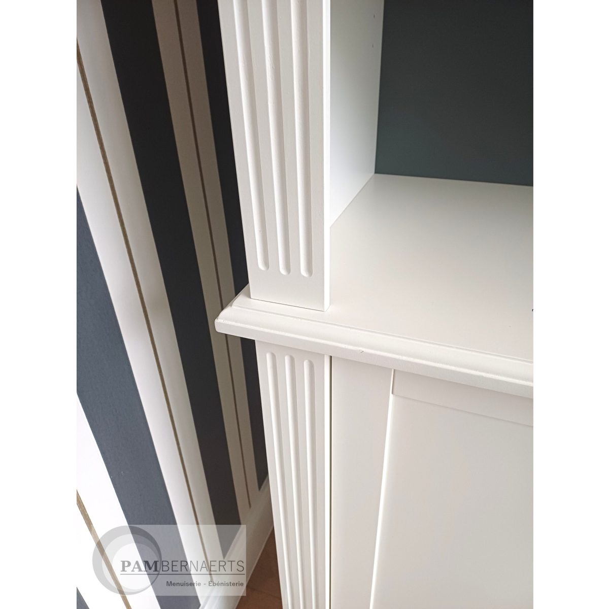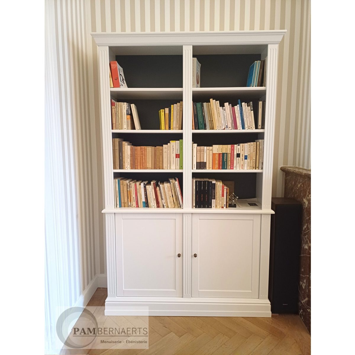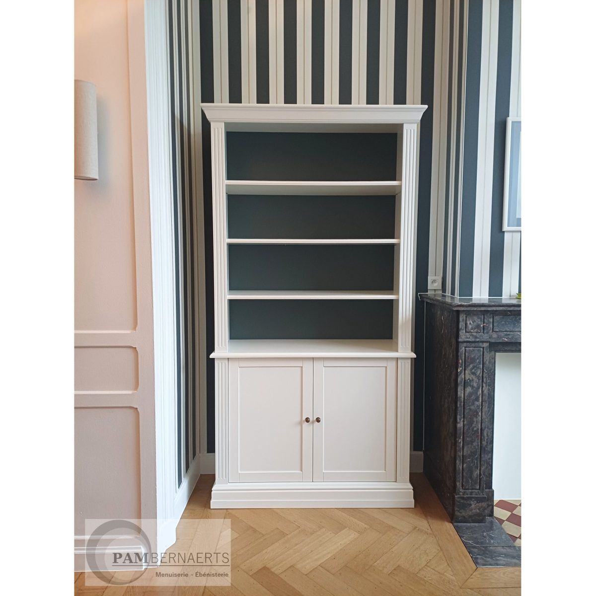 Bibliothèque en MDF laqué, inspiration orientale