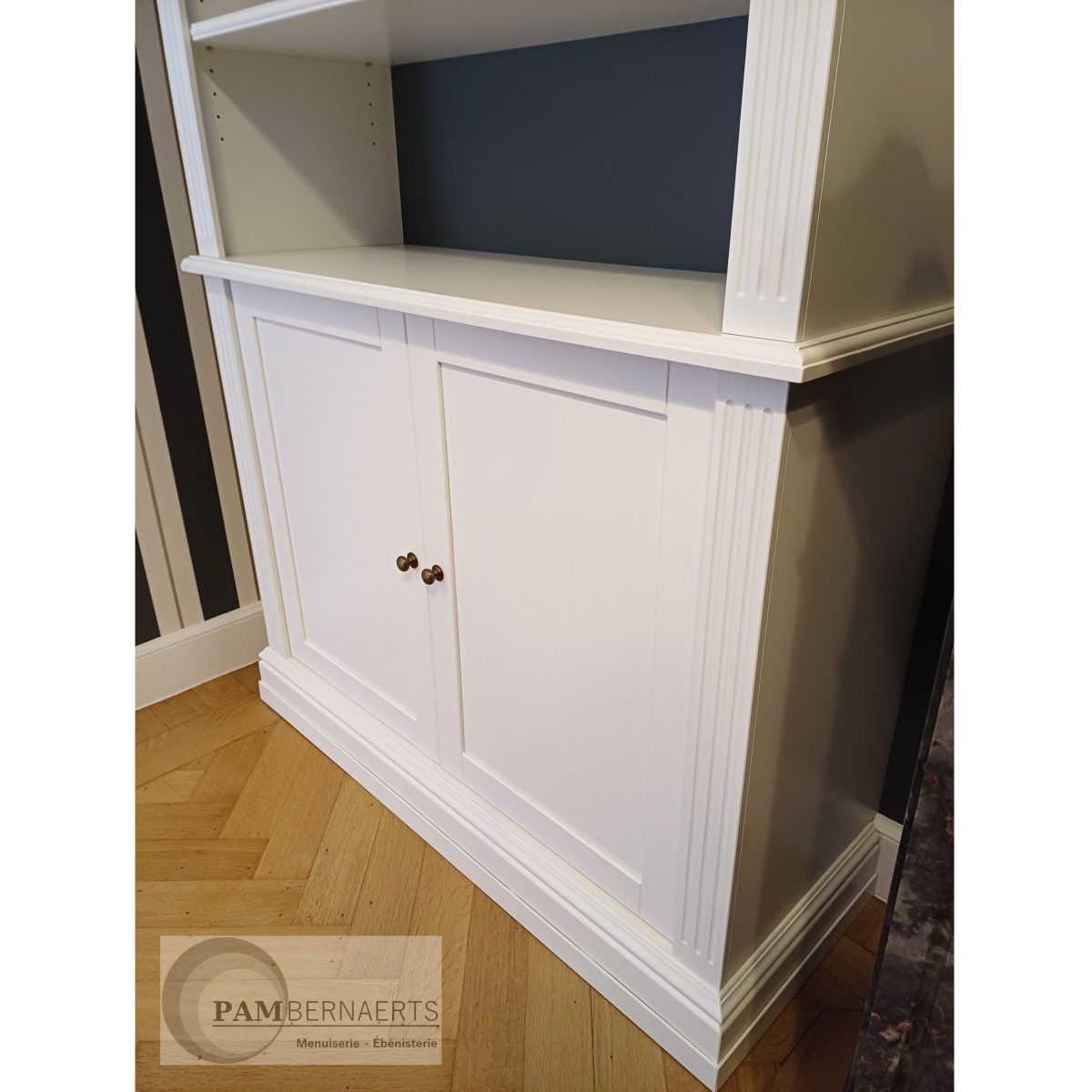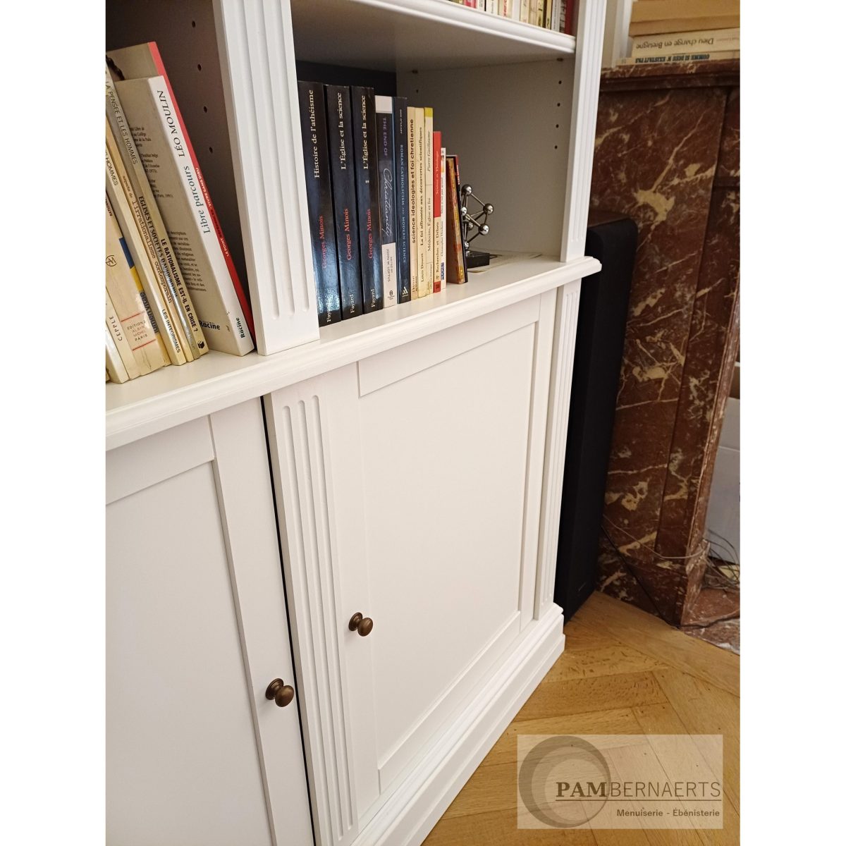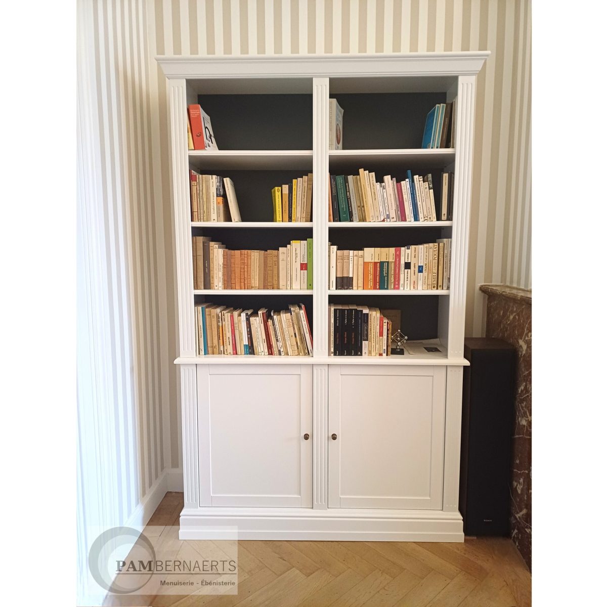 Bibliothèque en MDF laqué, inspiration orientale