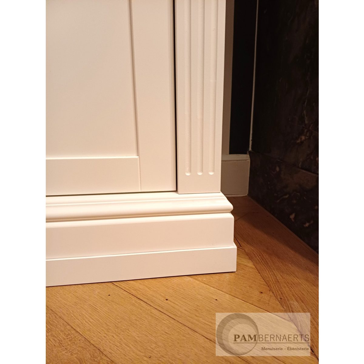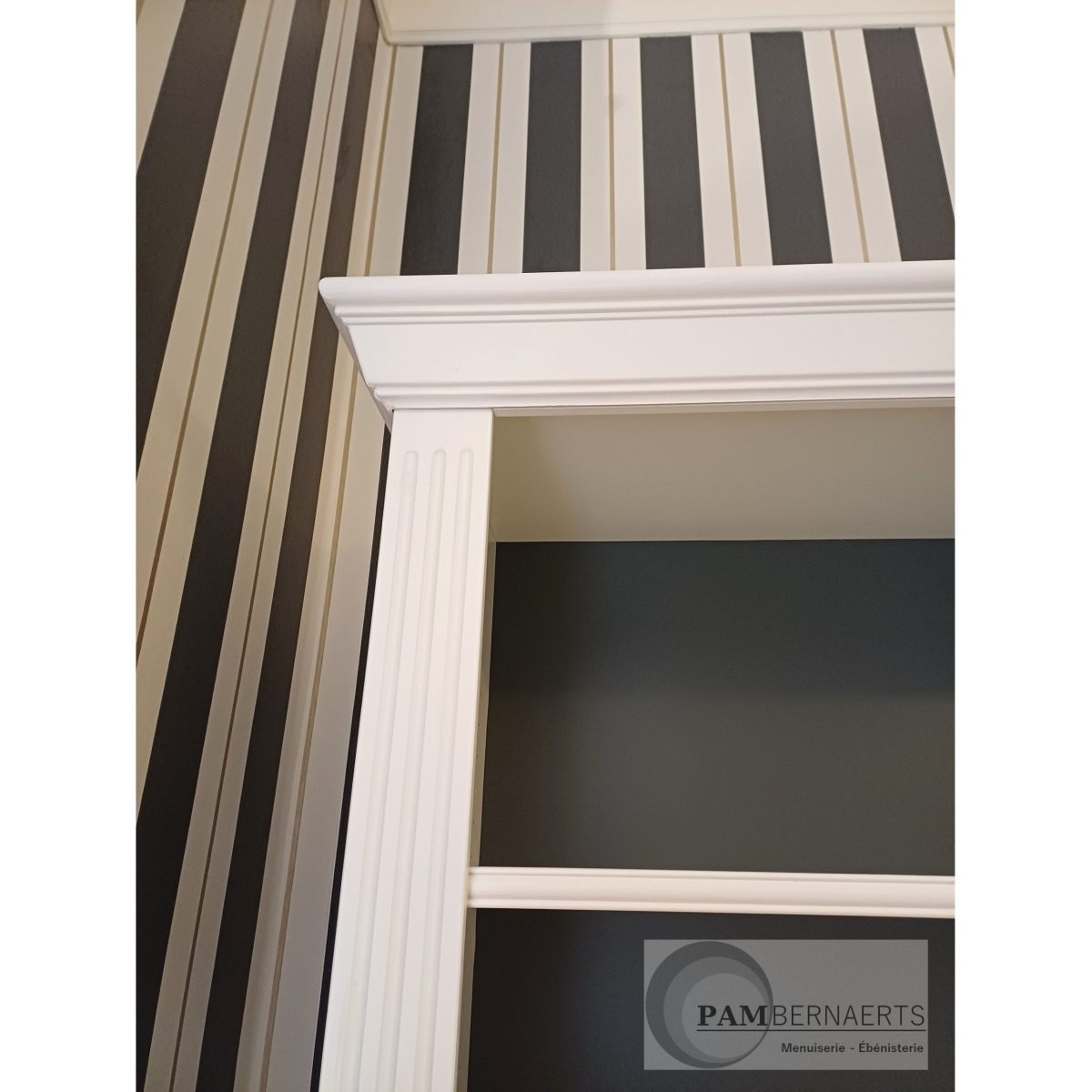 Bibliothèque entre deux murs, laqué beige